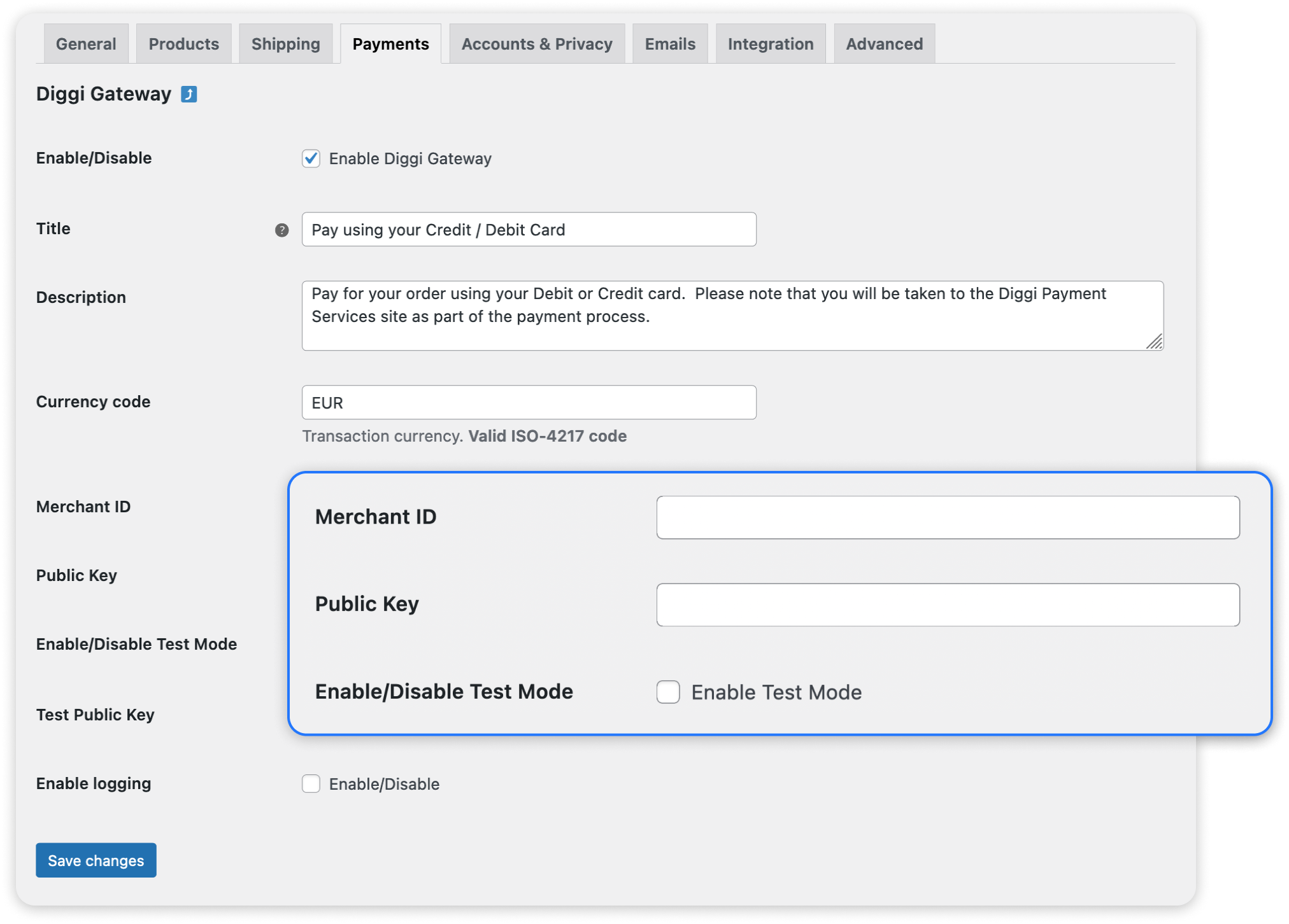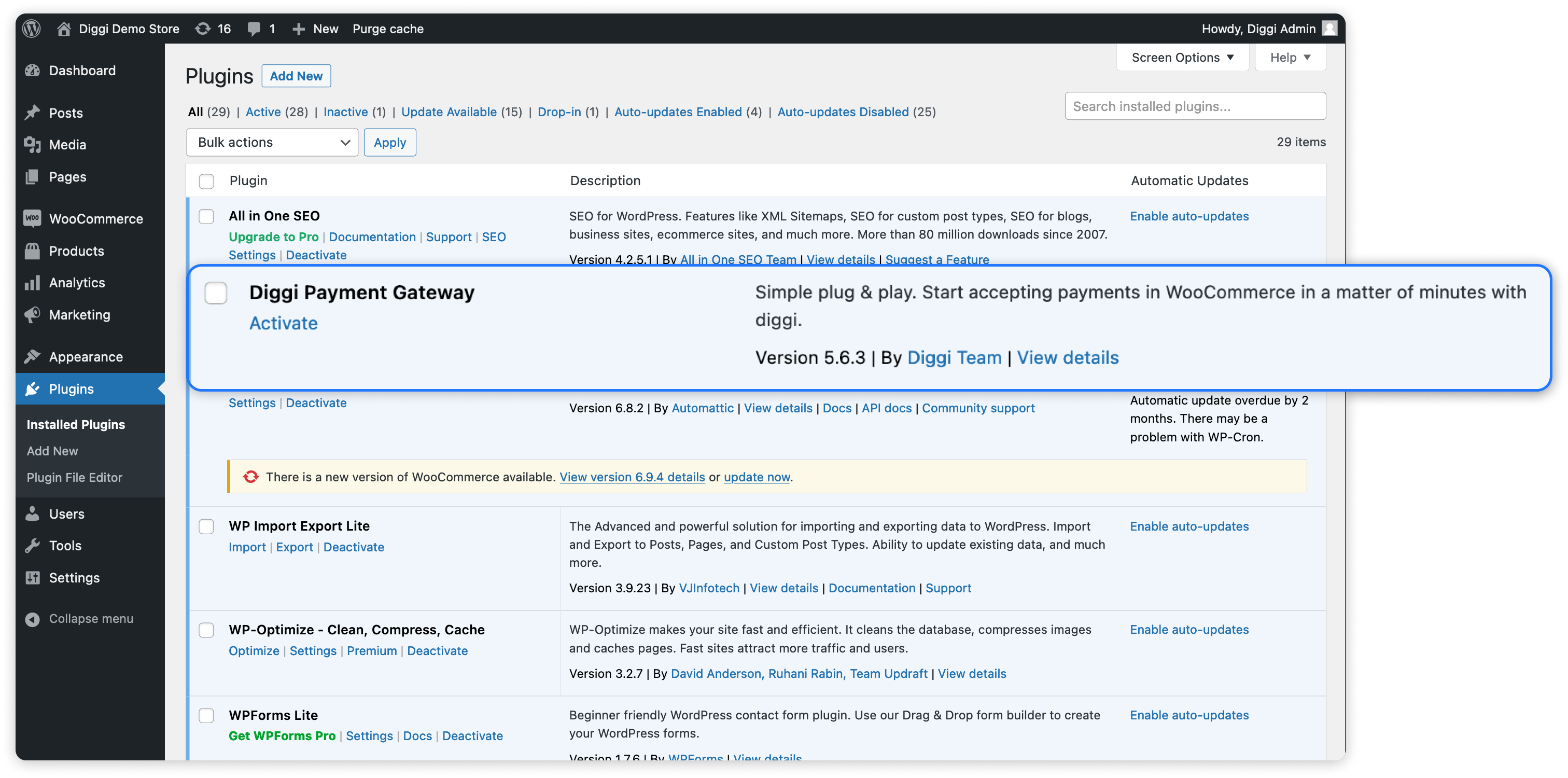 Enable Diggi Payment Gateway in WooCommerce